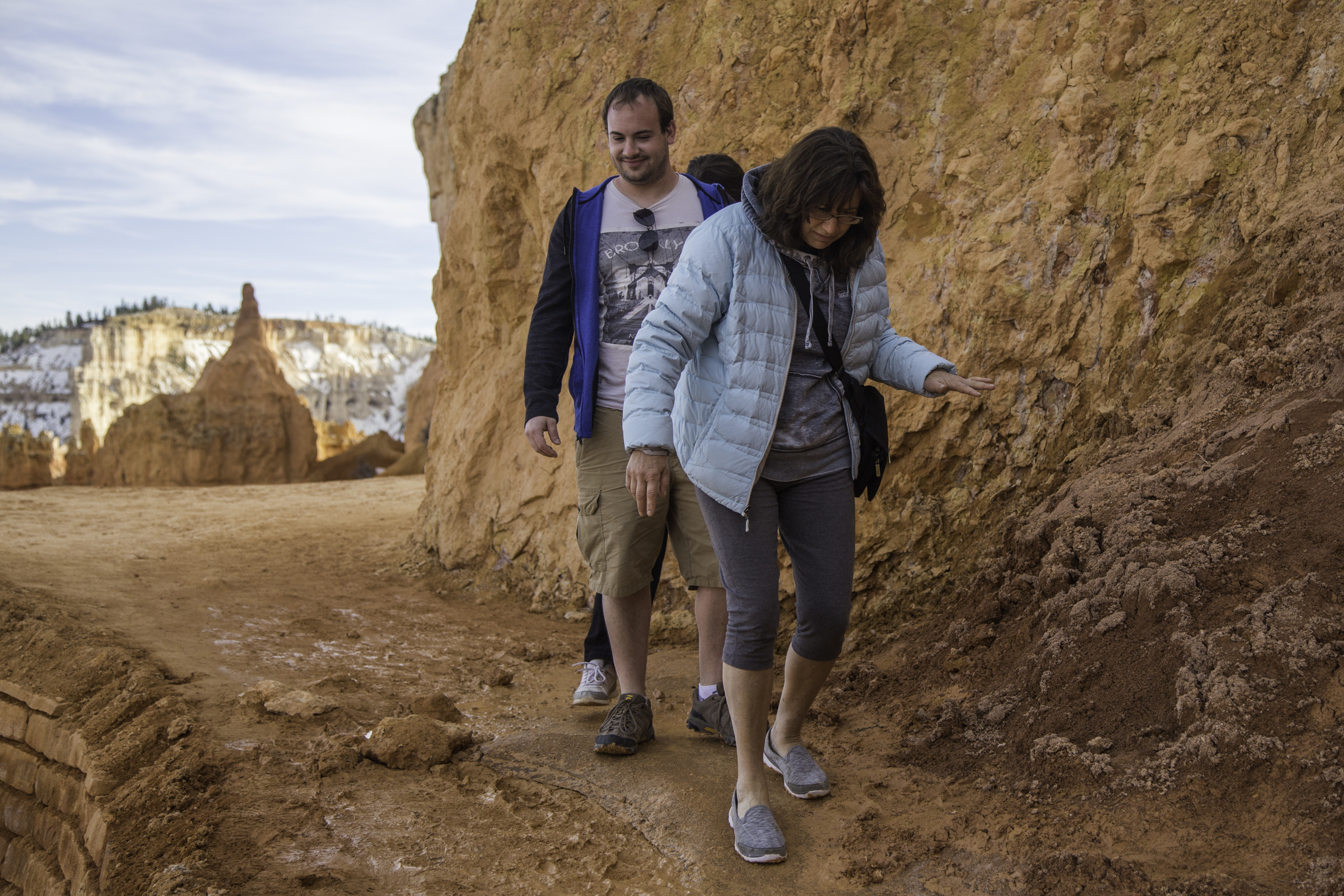 The melting snow washes away the trail. Step gingerly