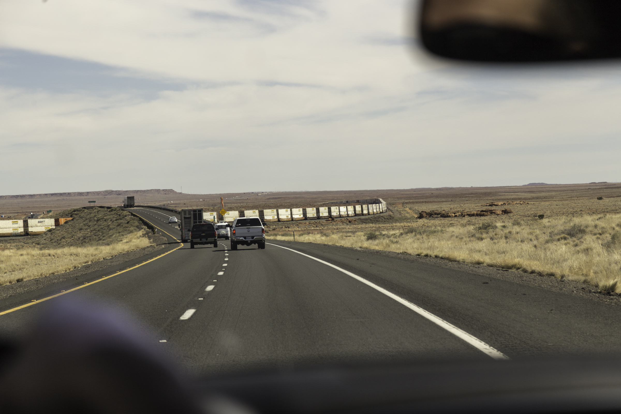 This is most of Arizona. There was a long train going every 10 minutes. The economy must be good