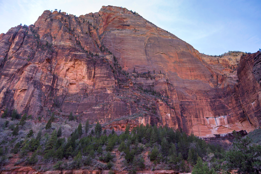 We need to follow along the base of this peak. Its a narrow trail with rock slides a constant danger