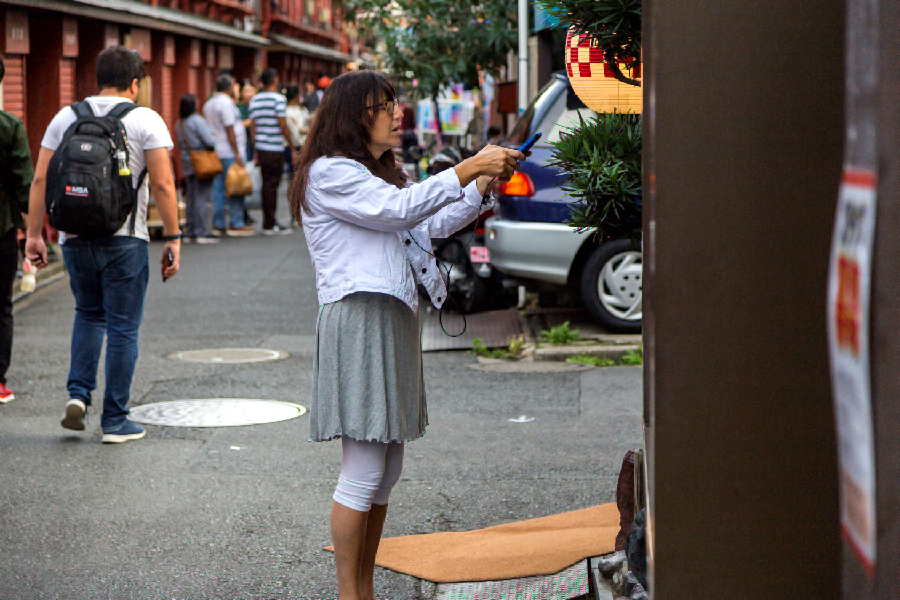 She found the perfect recipe and is taking a picture. Its in Japanese