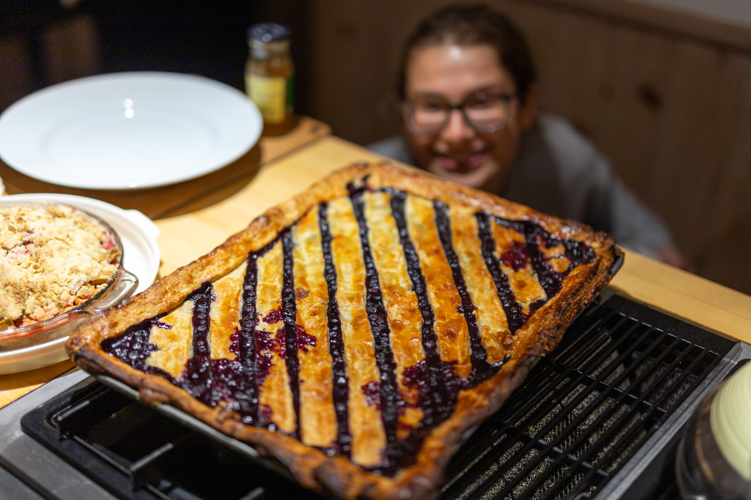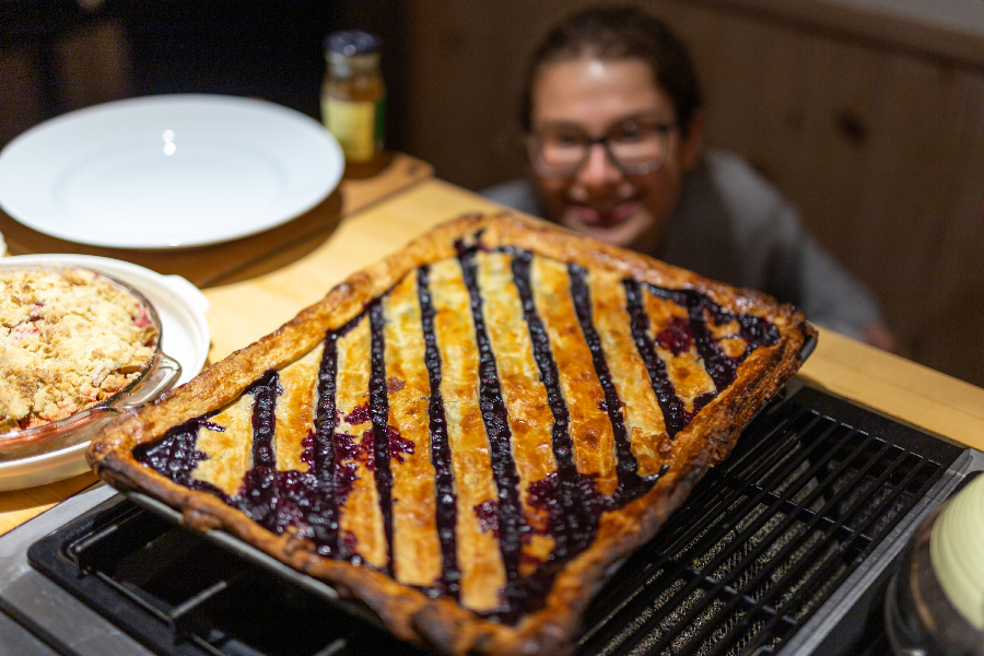 Isabel's Blueberry Slab Pie. It took 2 people to life it up. Feeds 20 hungry people. Understatement