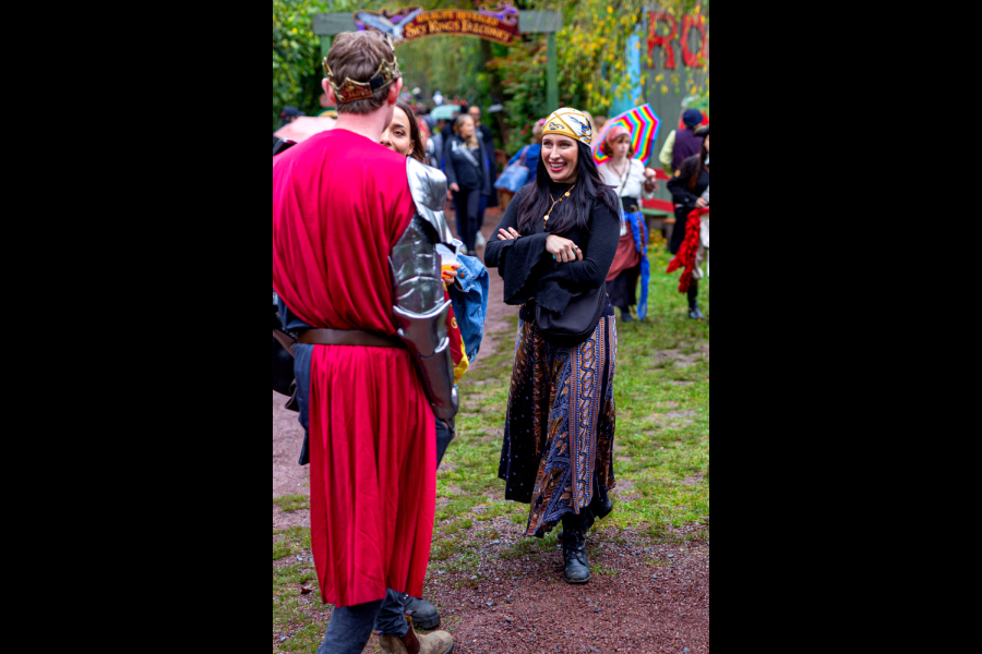 The prince shares a funny secret with the ladies in waiting