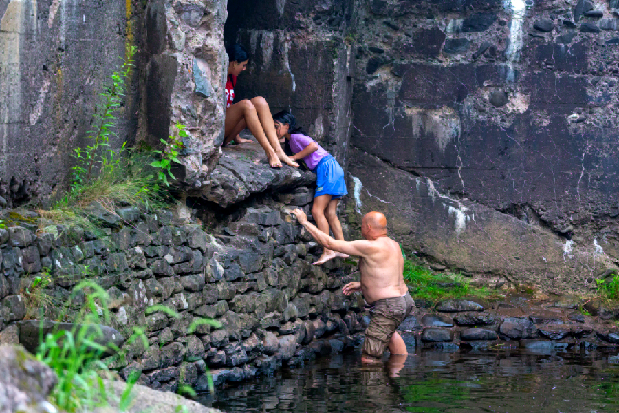 Climbing to the 2 meter cave