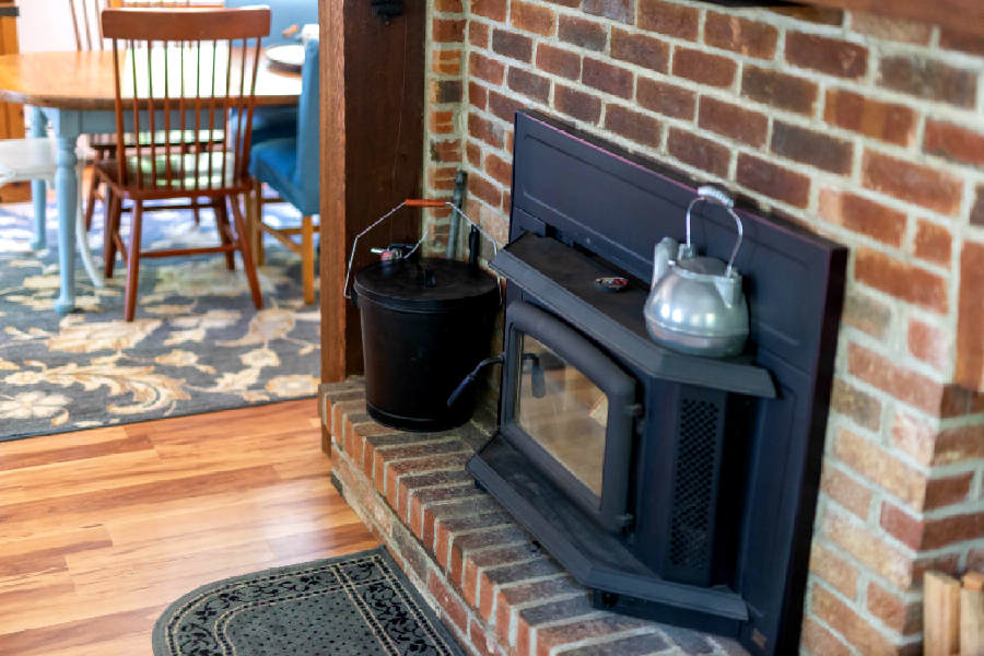 Main house fireplace insert. Seller says it takes a while to heat the house.
